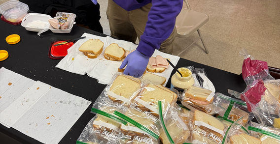 Members of Phi Upsilon pack boxes, serve food, and donate perishable goods to local residence in the neighborhood.